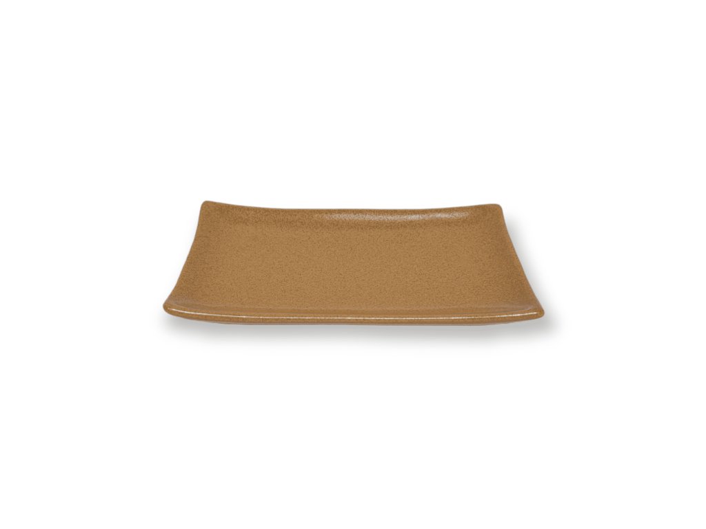 Obdélníkový talířek hnědé barvy, vhodný např. pro servírování sushi.