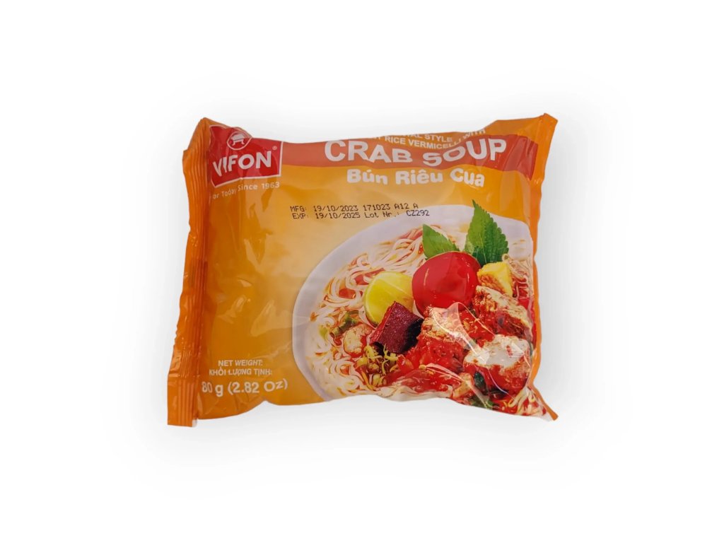 Instantní krabí polévka VIFON spojuje lehkost rýžových nudlí s bohatou chutí krabího vývaru. Díky kombinaci sušených krevet, sójového tvarohu, červené šalotky a aromatického koření nabízí autentický zážitek vietnamské kuchyně. Polévka je hotová během několika minut – ideální pro rychlý oběd nebo teplou svačinu s nádechem Asie.