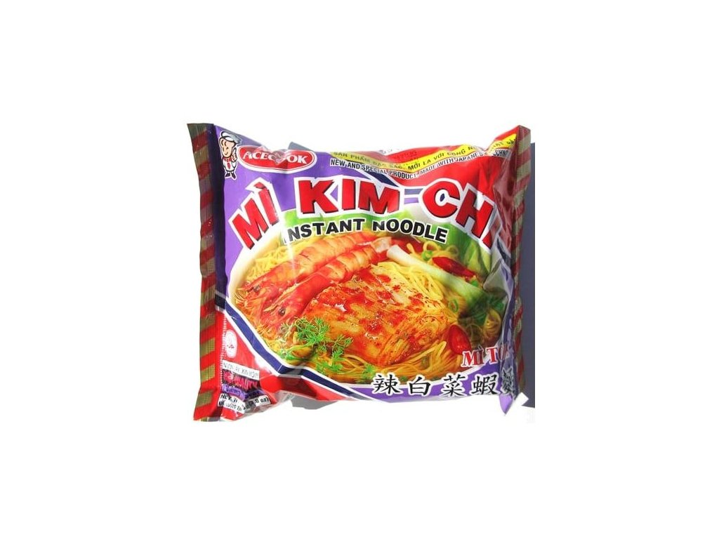 Složení: Nudle (88 %): pšeničná mouka, částečně ztužený rostlinný palmový olej, tapiokový škrob, sůl, cukr, stabilizátor trifosforečnan (E451i), kypřící látky: uhličitan draselný (E501i), uhličitan sodný (E500i), antioxidanty butylhydroxyanisol (E320), butylhydroxytoluen (E321); Polévka (12 %): rostlinný palmový olej, sůl, cukr, sušené kimchi, látky zvýrazňující chuť a vůni: glutaman sodný (E621), inosinát sodný (E631), guanylát sodný (E627), koření (čili, pepř, zázvor, česnek), krevety, sušená jarní cibulka, smažený česnek, regulátor kyselosti kyselina citrónová (E330), sépiový prášek, barvivo: paprikový extrakt (E160c), antioxidanty E320, E321.
