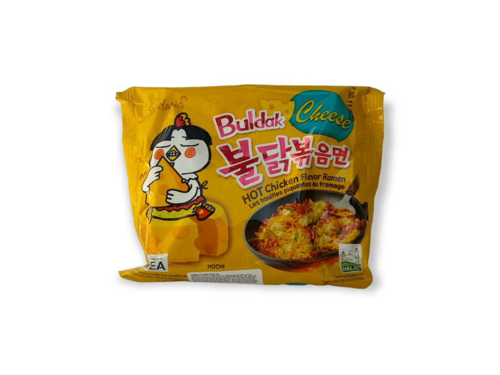 Legendární korejské nudle se sýrovou omáčkou, která spojuje jemnou krémovou chuť s lehkou pikantností. Nudle se připravují během několika minut – stačí vařit a smíchat s omáčkou. Tento variant je ideální pro všechny milovníky korejských nudlí, kteří chtějí vychutnat autentickou chuť bez extrémní pálivosti. Buldak sýrové se hodí jako rychlý oběd, svačina nebo večeře plná intenzivní chuti a aroma korejské kuchyně.