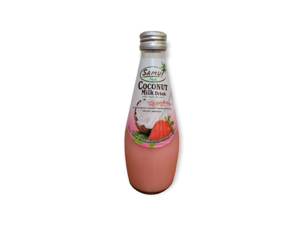Kokosový mléčný nápoj SAMUI Jahoda kombinuje krémovou chuť kokosu s ovocnou svěžestí jahod. Díky kokosovému gelu Nata de Coco má příjemnou texturu a jemně nasládlou chuť. Skvělý jako osvěžující nápoj do horkých dnů, ale i jako zajímavý doplněk k dezertům nebo snídaním. Přináší chuť tropů přímo do vaší ruky.