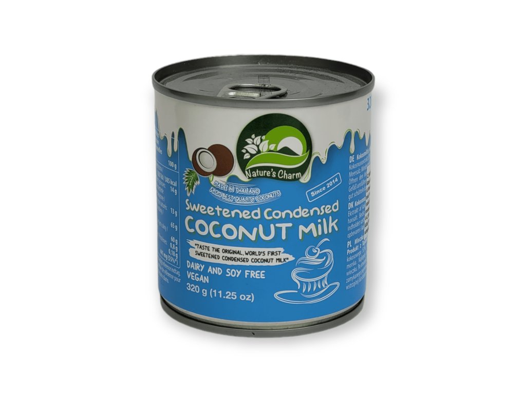 Slazené kondenzované kokosové mléko Nature’s Charm je rostlinný produkt vyrobený z kokosového extraktu a cukru. Nabízí jemnou, krémovou texturu a bohatou kokosovou chuť, která dokonale nahradí tradiční kondenzované mléko v dezertech, kávě, pečení i vaření. Je přirozeně bez laktózy, bez lepku a vhodné pro vegany. Díky obsahu kokosového tuku má mléko sametovou konzistenci a dodá vašim pokrmům i nápojům exotický nádech.