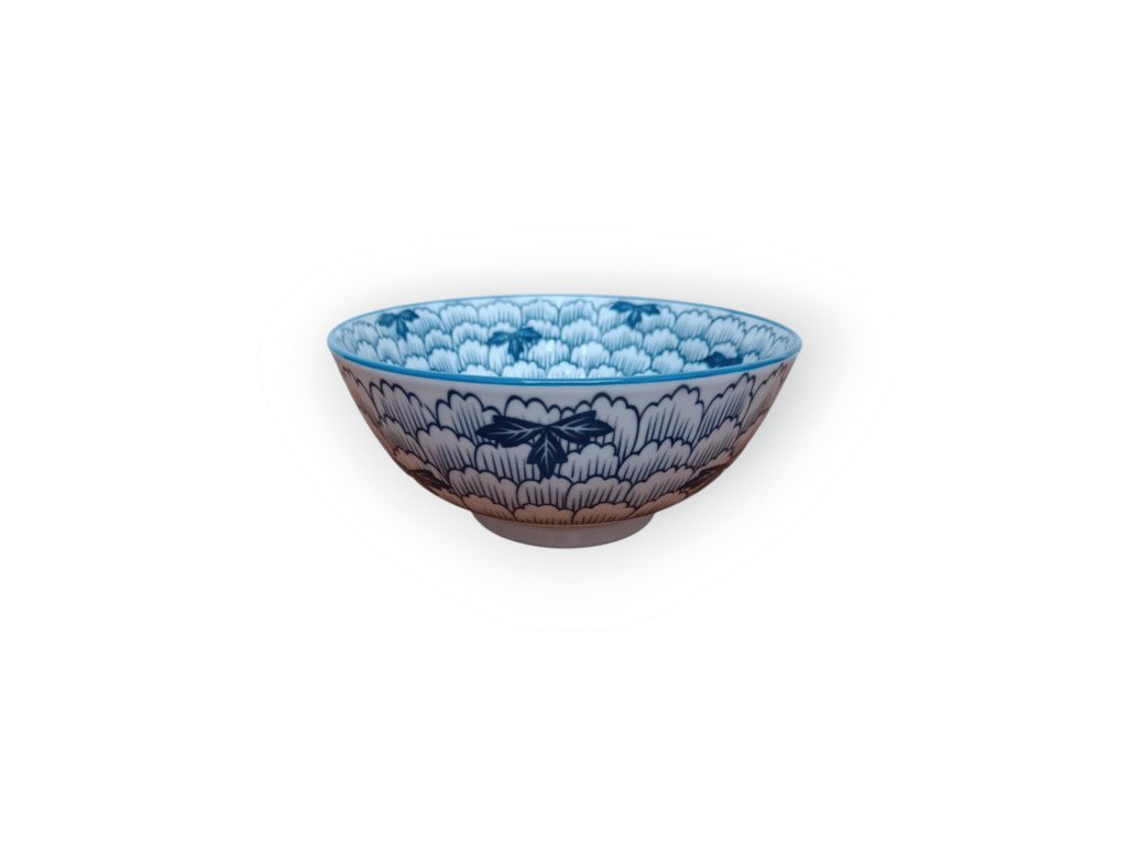Velká porcelánová miska na polévku phở s designem modrých listů.
