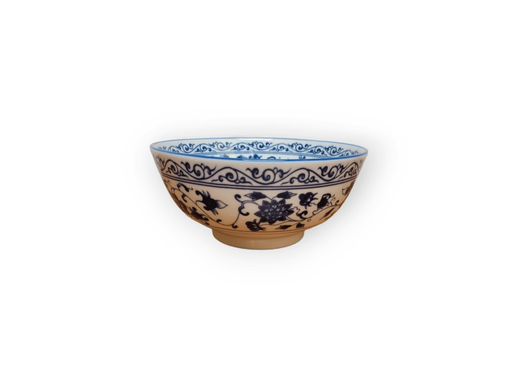 Menší porcelánová miska s dekorem tmavě modrých květů.