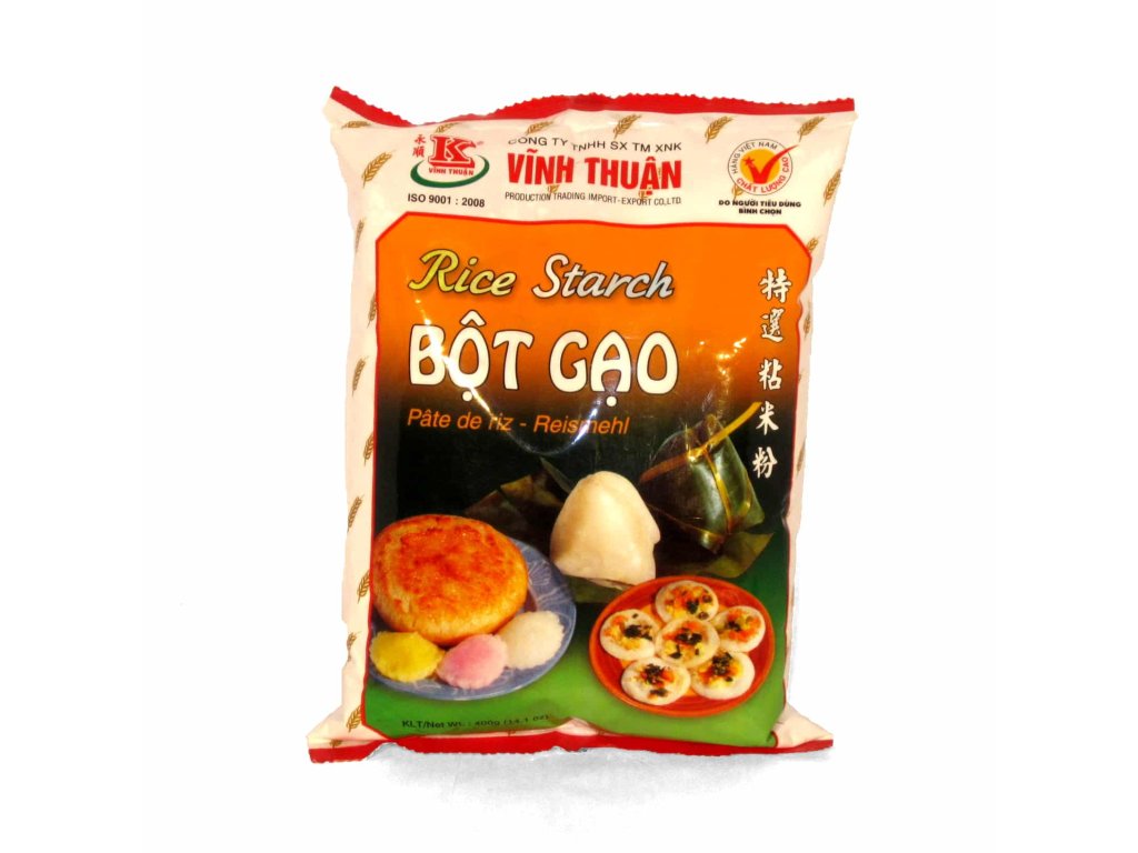 Rýžový škrob VINH THUAN pochází z Vietnamu a je vyroben z kvalitní rýžové mouky. Tento produkt je ideální pro zahušťování omáček, polévek, pudinků, krémů či asijských dezertů, aniž by změnil chuť pokrmu. Díky jemné textuře poskytuje pokrmům hladkou konzistenci a je vhodný pro bezlepkovou dietu. Škrob je snadno rozpustný ve studené vodě a usnadňuje přípravu tradičních i moderních receptů.